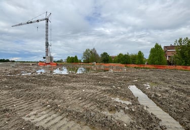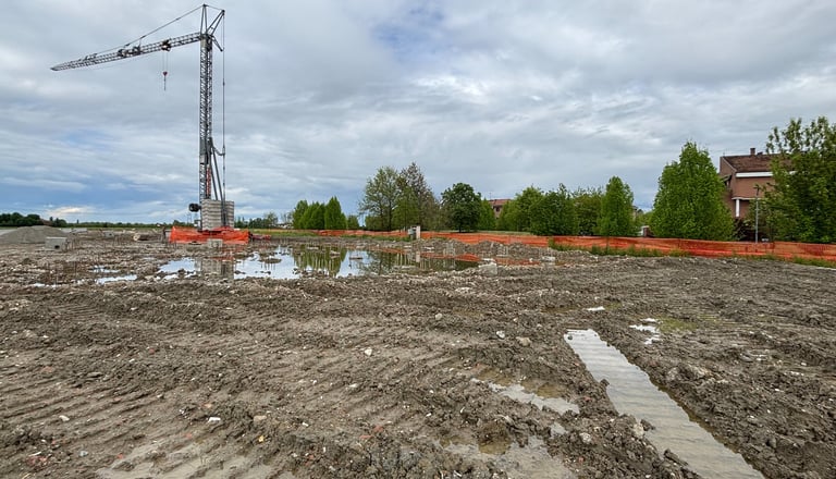 Realizzazione di pali trivellati (diametro 60-80cm) con gabbia metallica e getto di calcestruzzo in opera fino a 11,50 metri sotto il suolo.