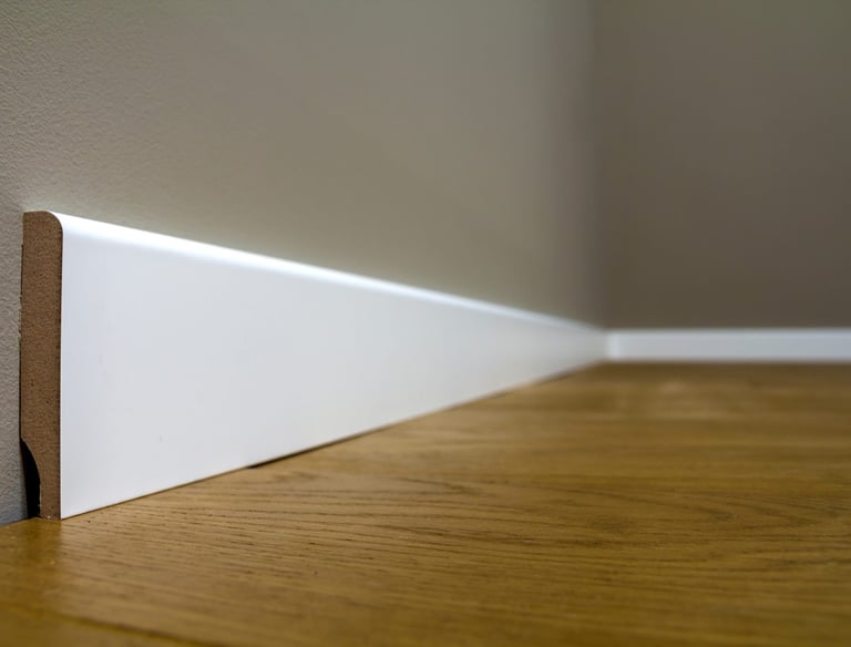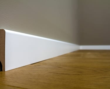 Il battiscopa sarà installato in tutti gli ambienti in legno misura 50x10mm in colore laccato bianco.