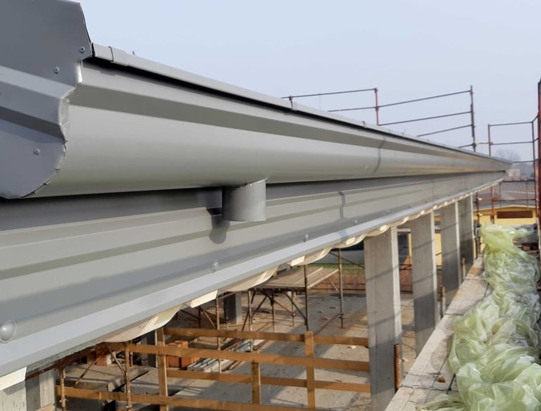 I canali di gronda, bandinelle, converse e pluviali sono previsti nei colori e nelle quantità come da indicazioni della D.L.
